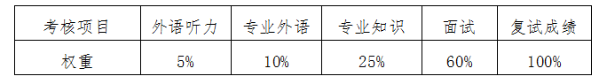 4.复试成绩采用综合计分办法,实行百分制,60分及格。各部分权重如下: