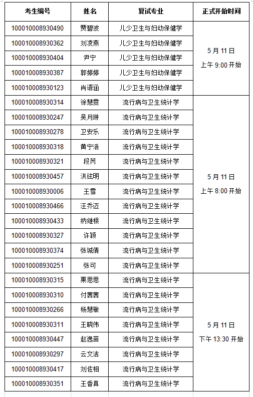 2.所有考生于2020年5月14日上午9点-12点,学院教学办公室电话010-82801182,查询各二级学科专业复试结果,并同时在公卫学院主页公布可调剂的专业方向及名额信息。