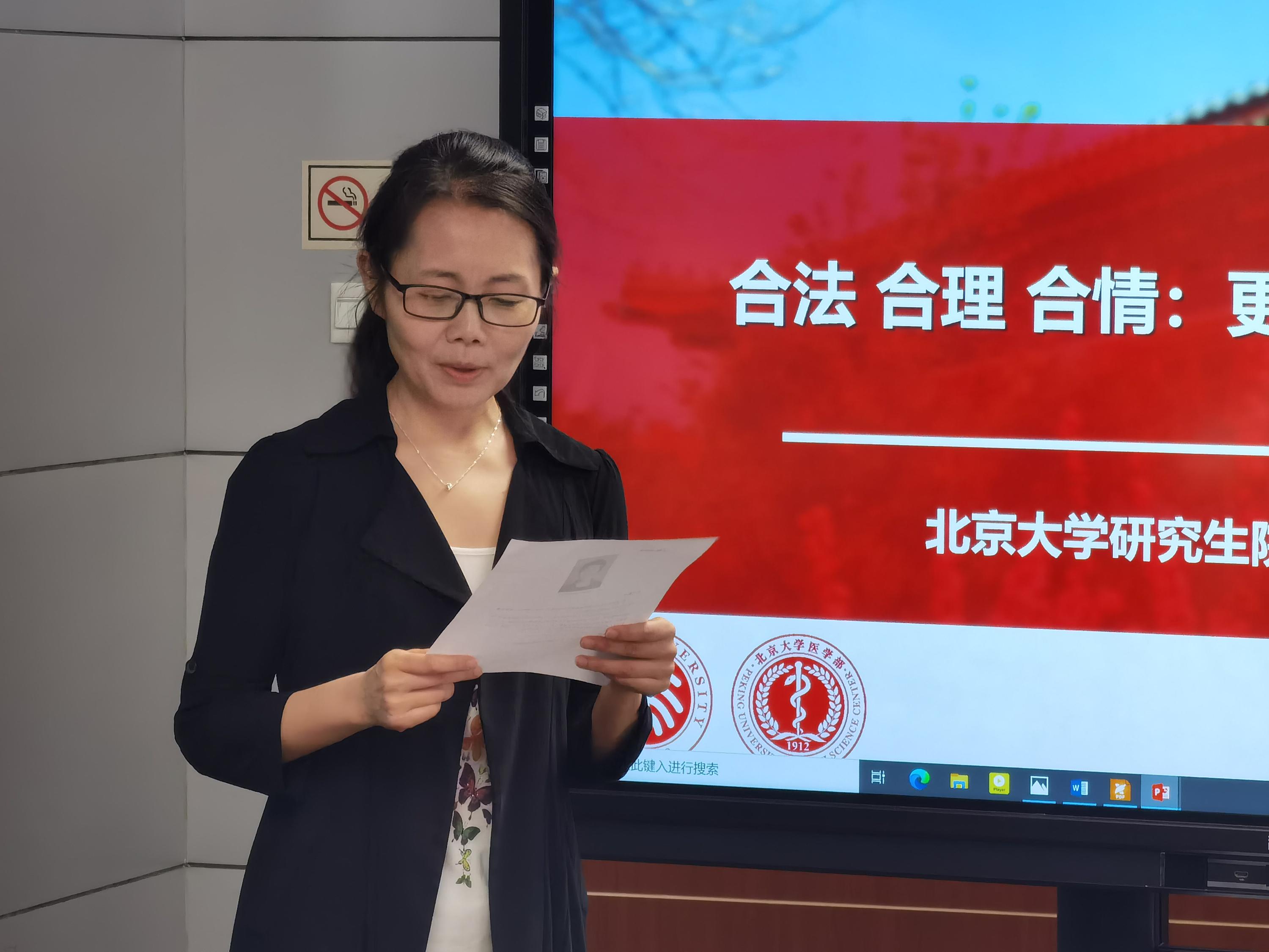 公卫学院副院长许雅君老师热烈欢迎并感谢王青老师参加本次公共卫生学院双语教学兴趣小组及导师成长工作坊讲座,强调其作为研究生院医学部分院副院长,在研究生教育领域具有丰富经验,相信王青老师对《学位法》颁布后的新情况、新法规、实际执行等问题的解读,对提升学院导师指导与管理水平、加强研究生培养质量建设具有重要的指导意义。