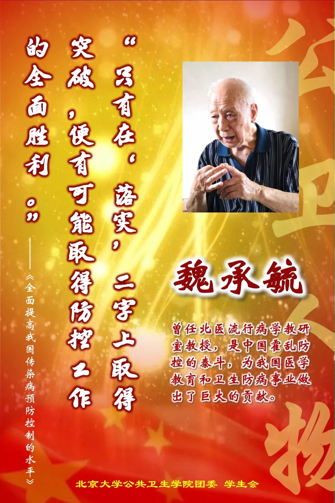 魏教授原在欧美大片ppt免费大全医学院攻读医疗专业并定位于内科,新中国诞生后,百废待兴,而当时各种传染病的预防与控制任务十分紧迫,因此,当1954年春天组织上决定要调他离开内科而改学流行病学时,他毅然服从了组织决定,从此迈入了预防医学的新天地。他在教研室老教师和前苏联专家的指导下勤奋学习,为日后承担教学重任打下了良好基础。他立足校园,心系社会,在做好教学本职工作的同时,积极参加校内外各种有益的活动,如河北省保定地区洪灾后钩端螺旋体病的调查、天津海河工地民工中细菌性痢疾爆发的处理、陕西秦岭三线建设队伍中病毒性肝炎流行的核实与处理等。1972~1973年,遵照周恩来总理对云南防疟工作的指示,他受命任北京医疗队队长率队赴云南西双版纳傣族自治州及思茅等地开展医疗卫生及防疟灭疟工作,其后又赴滇西的大理、保山、腾冲一带进行调查。他同样热心于国际学术交往,自1975年以来,曾多次受卫生部委派前往苏丹、埃及、泰国、美国进行热带病考察,或出席有关会议,都能圆满地完成任务。他还积极参与国际流行病学协会(IEA)举办的学术交流活动,并先后赴芬兰、美国及澳大利亚等地与国际同行们进行研讨,取长补短,增进友谊,他本人也于1988年被接纳为该会会员。